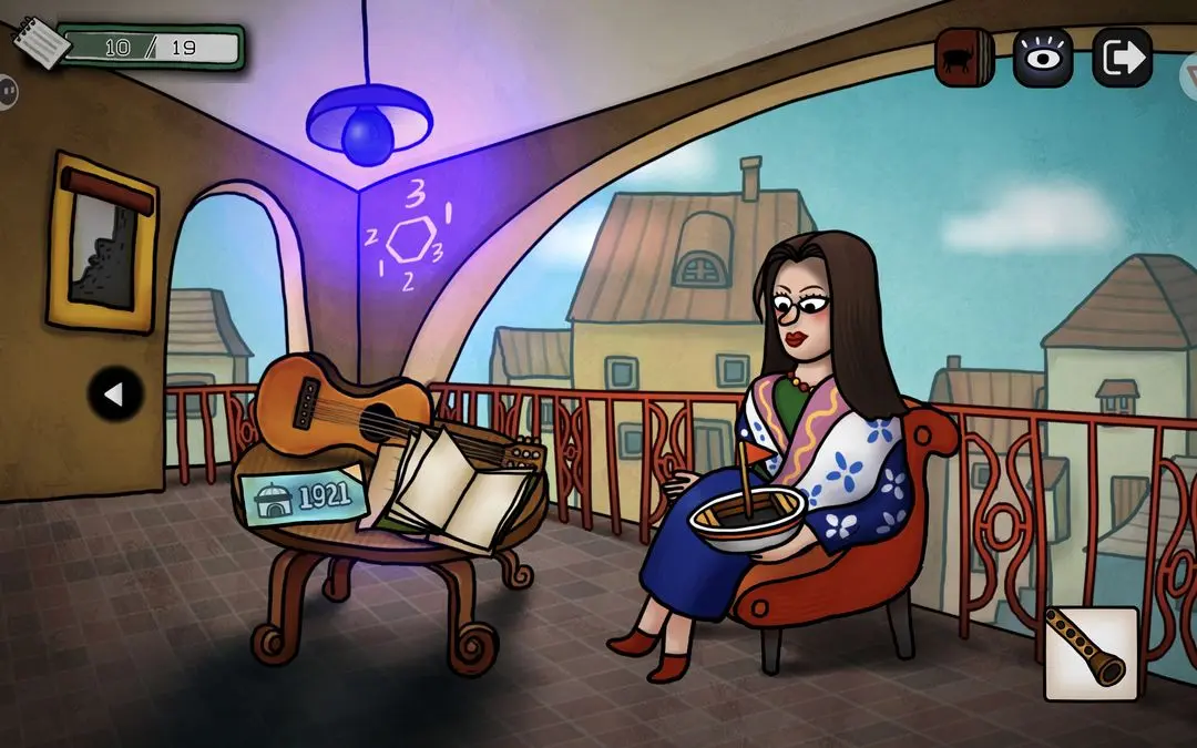 6、和女人对话,得到提示:浴室门9:55开,阳台上的鸽子要喂,另一个女孩在阳台看书,女人还需要一个杯子