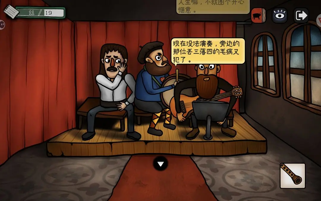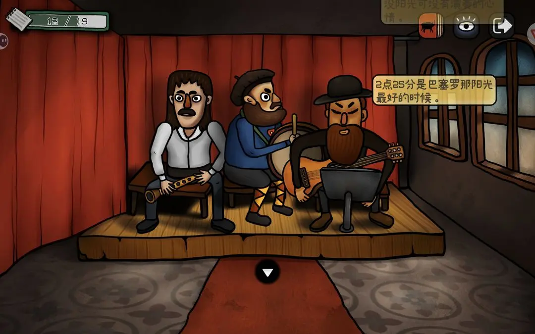 34、回剧院,乐队开始演奏,拿走橘子,注意右下角的时间11:25