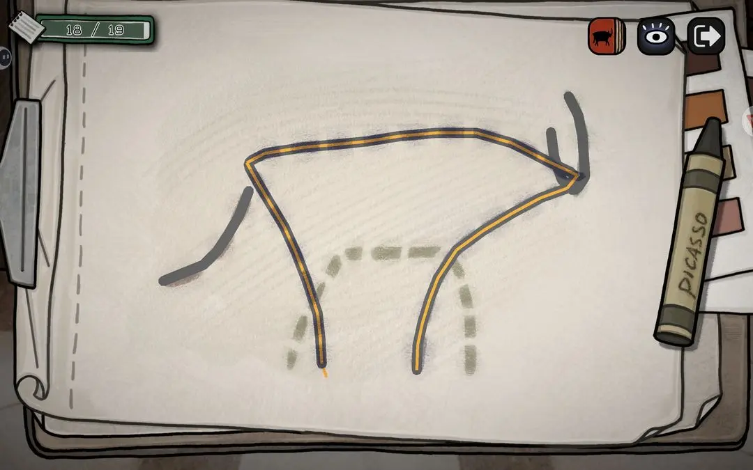 (右上角这个石壁可以点出裂缝,多点几次会出现一个雕塑,解锁成就【立体主义探险家】)