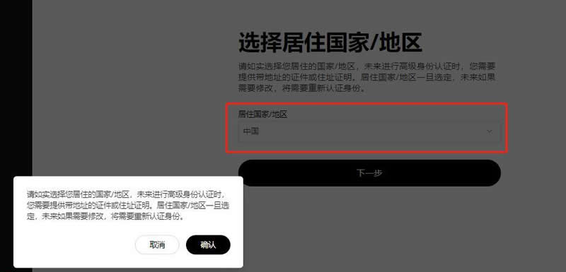 3.选择对应国家/地区并设置账户安全密码