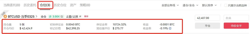 9.提交委托后可在持仓界面查看保证金比例和预估强平价