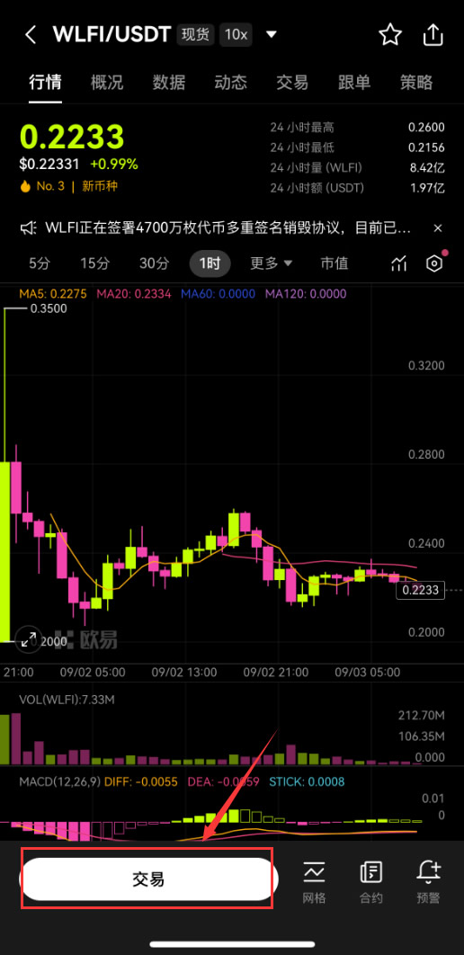2. 搜索WLFI/USDT交易对