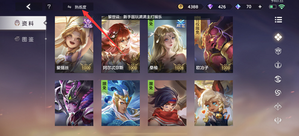 2、之后点击左上角的【曙光战力】,就可以查看各英雄的战力,英雄的起始战力都是1000。