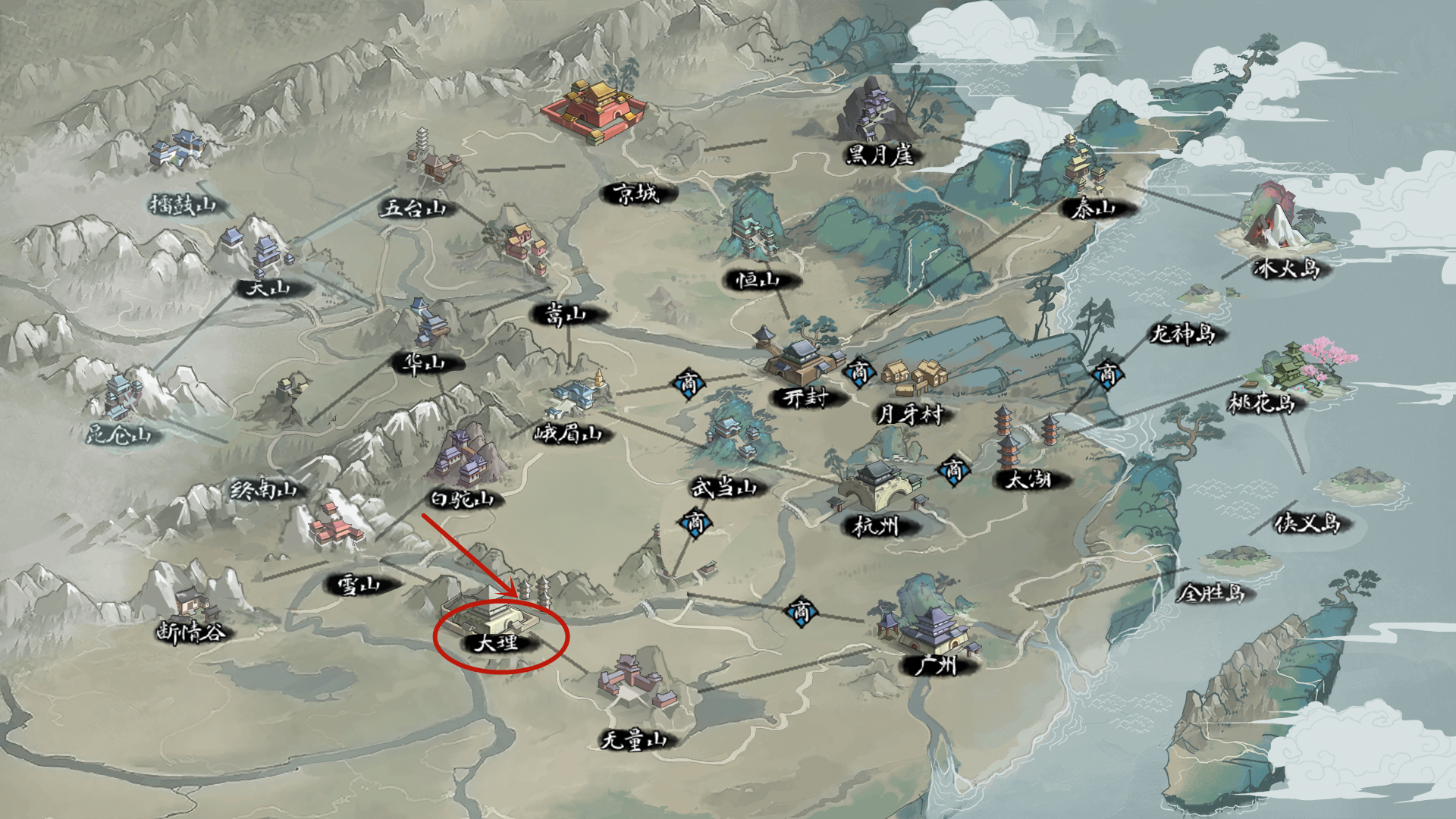 1、打开大地图进入大理;