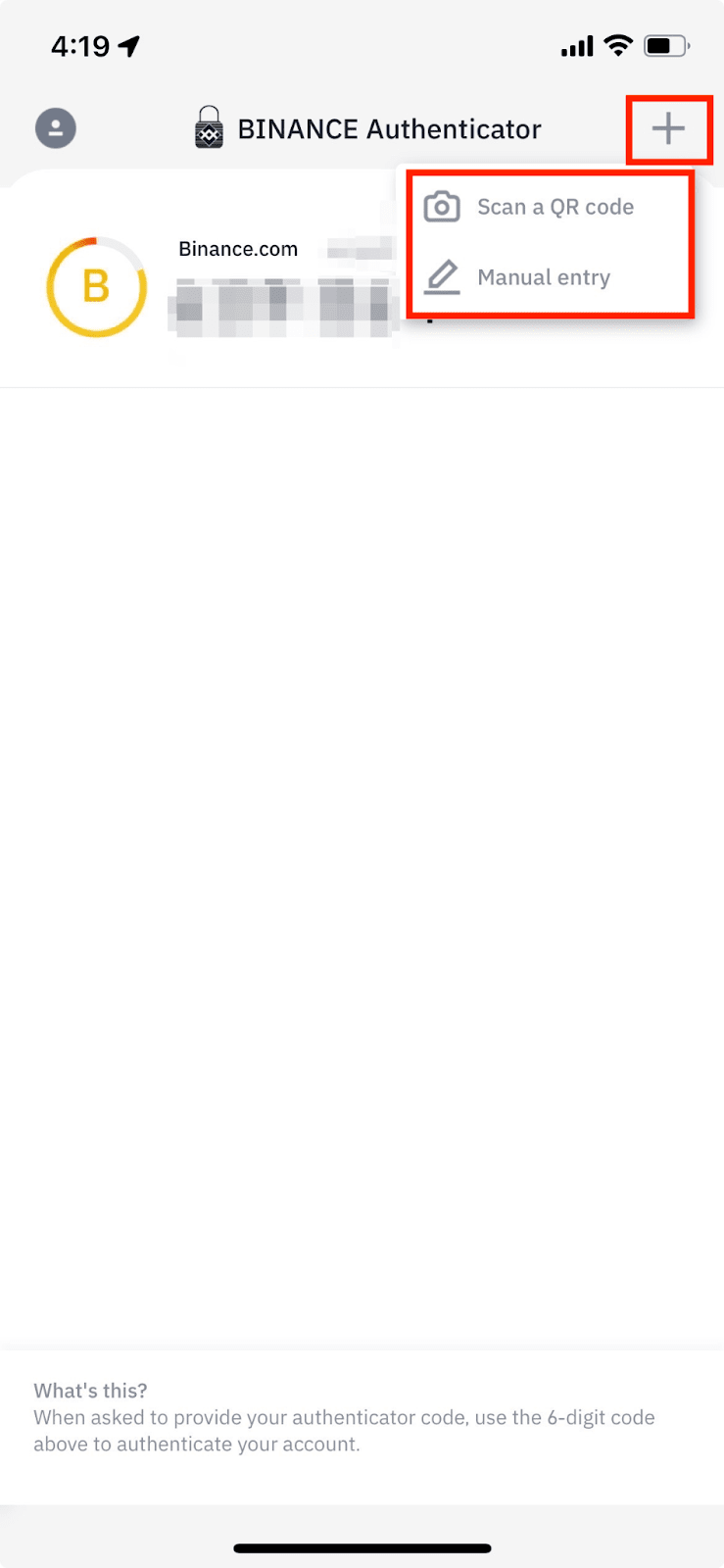 手机端:打开币安验证器App,点击界面上的[+]号按钮或[扫码添加]选项。