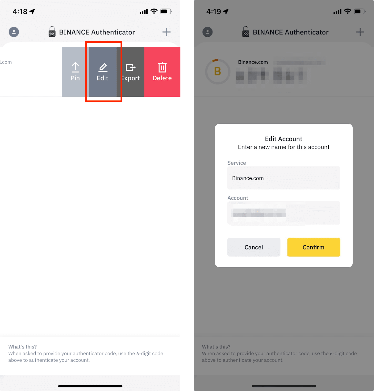 3.要自定义账户名称,请向左滑动双重身份验证码,然后点击【编辑】。