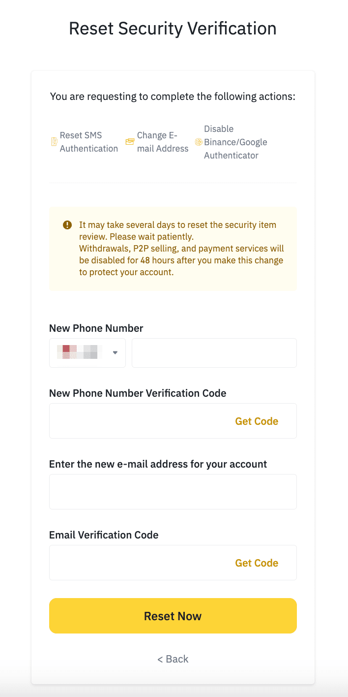 (4.输入新的手机号和/或邮箱地址。然后,点击【获取验证码】进行验证,再点击【开始重置】。