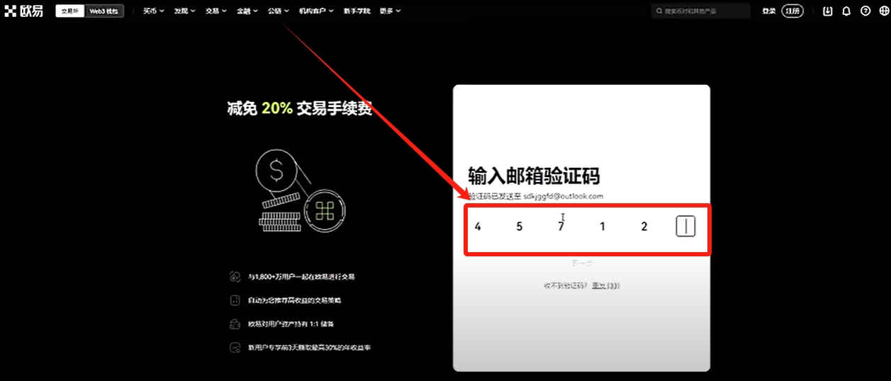 然后他就会给你刚刚注册的邮箱里发一个验证码。我们的打开邮箱找到验证码输入进来。