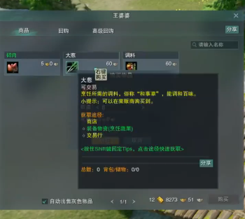 5、找一边的王婆婆购买猪肉、大葱、调料各一个,然后交任务