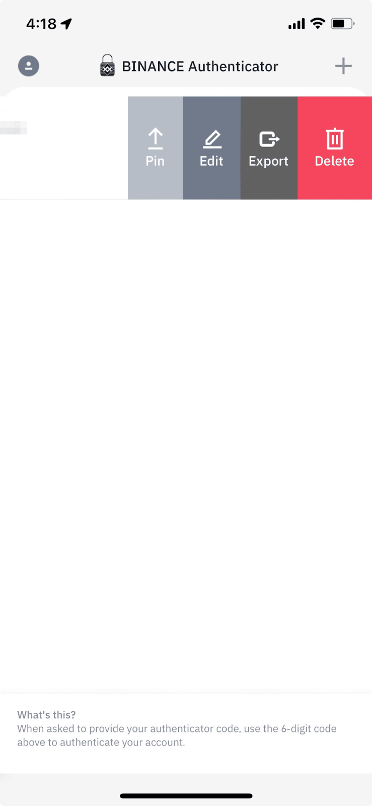1. 在验证器App内可通过滑动操作管理账户,包括重命名、导出或删除等