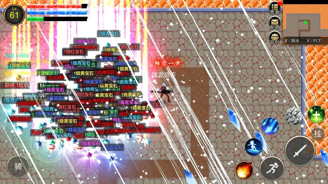 6、10级副本史莱姆营地(坐标7-25,boos属性-火,小怪属性-火)—— 烈焰法杖图纸,烈焰戒指,中级装备,火墙技能碎片,烈焰戒指碎片,火球技能,火墙技能,火环技能,