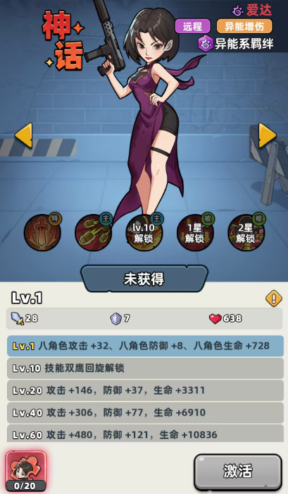 第二位推荐角色是艾达。作为异能队核心输出,她兼具范围压制与团队增益双重职能。普攻技能可向前方扇形区域进行高速扫射,对最多四名敌人造成总计192%攻击力的异能伤害;大招投掷手枪后自动回旋,路径上同样可命中至多四名目标,每次命中均附加独立异能伤害。更重要的是,其技能命中可为全队提升基础攻击与防御属性,显著增强异能体系的整体爆发与续航能力。