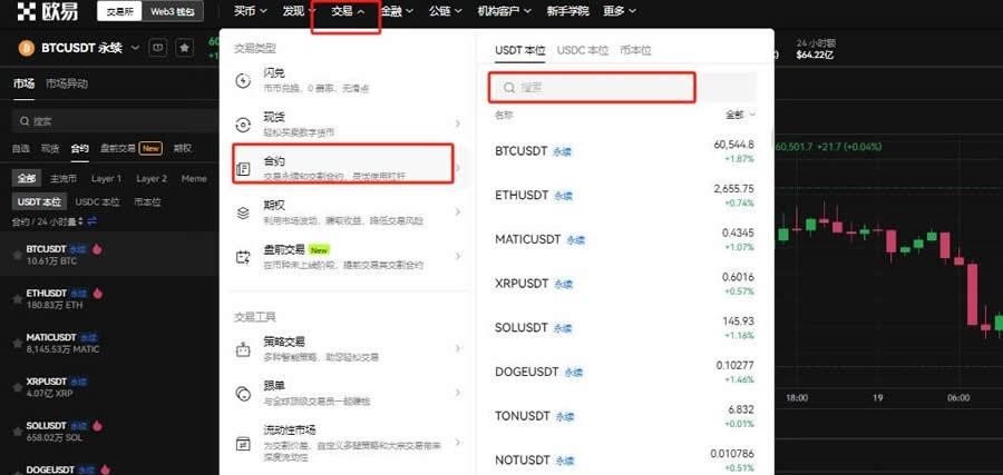 1. 访问欧易平台官网完成注册后,进入交易板块选择合约交易,并确定交易币种如BTC。