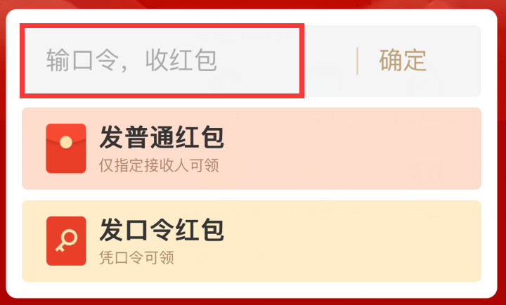 4、在此框中输入口令并点击确定即可获取对应的口令红包