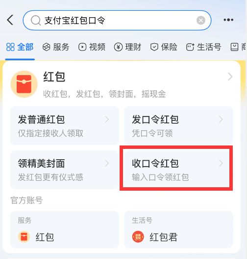 5、也可以直接在支付宝首页中搜索支付宝口令红包