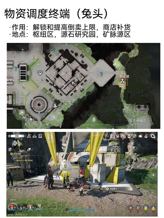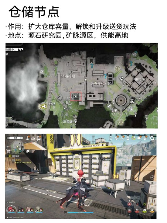 ·三个仓储节点地点:源石研究园,矿脉源区,供能高地