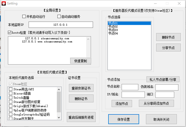 使用方式也比较简单,直接选择本地反代(推荐)启动服务即可,