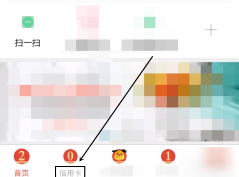 2.入建行APP主页后,点击页面底端菜单“信用卡”功能
