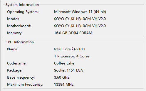 首先,这两个板块分别是系统信息和cpu信息,系统信息分别是系统版本、主板和内存;cpu信息分别是cpu型号、核心、核心代号、封装温度、基础频率和最高频率。