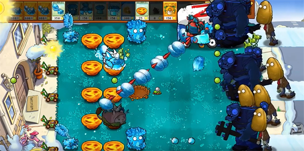 在种植与攻击表现上,冰瓜香蒲的实用性更是拉满,它可直接种植在草地或水上,无需额外的花盆、睡莲等道具,种植场景限制少,能灵活布局在战场的各个关键位置。
