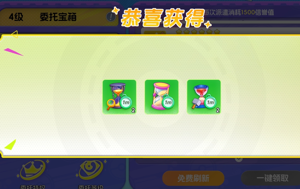所有进行中的派遣任务支持一键批量领取奖励。此外,每次成功领取均会累积委托经验,推动委托等级提升。等级越高,可开启的委托宝箱品质越优——宝箱内固定掉落加速类道具,适用于建筑升级、科技研究等多类加速场景。宝箱无每日领取次数上限,但相邻两次领取存在递增冷却时间;每日0点系统将自动重置冷却周期,确保次日首宝箱即时可用。