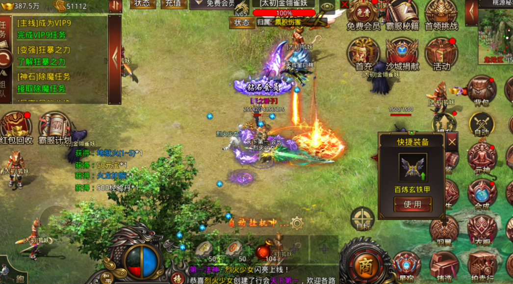 《战神域》的打金体系,并不是单点玩法,而是由挂机、装备回收、灵符兑换、福利系统共同构成的完整闭环。玩家只要在线或离线挂机,就能持续获得装备与资源,并通过回收与兑换转化为可用成长材料。