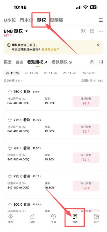 选择币种(如BTCUSDT期权) → 查看Call/Put链(不同行权价&到期日)。