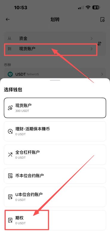 注意:需先有现货账户,转USDT到“期权浅包”。