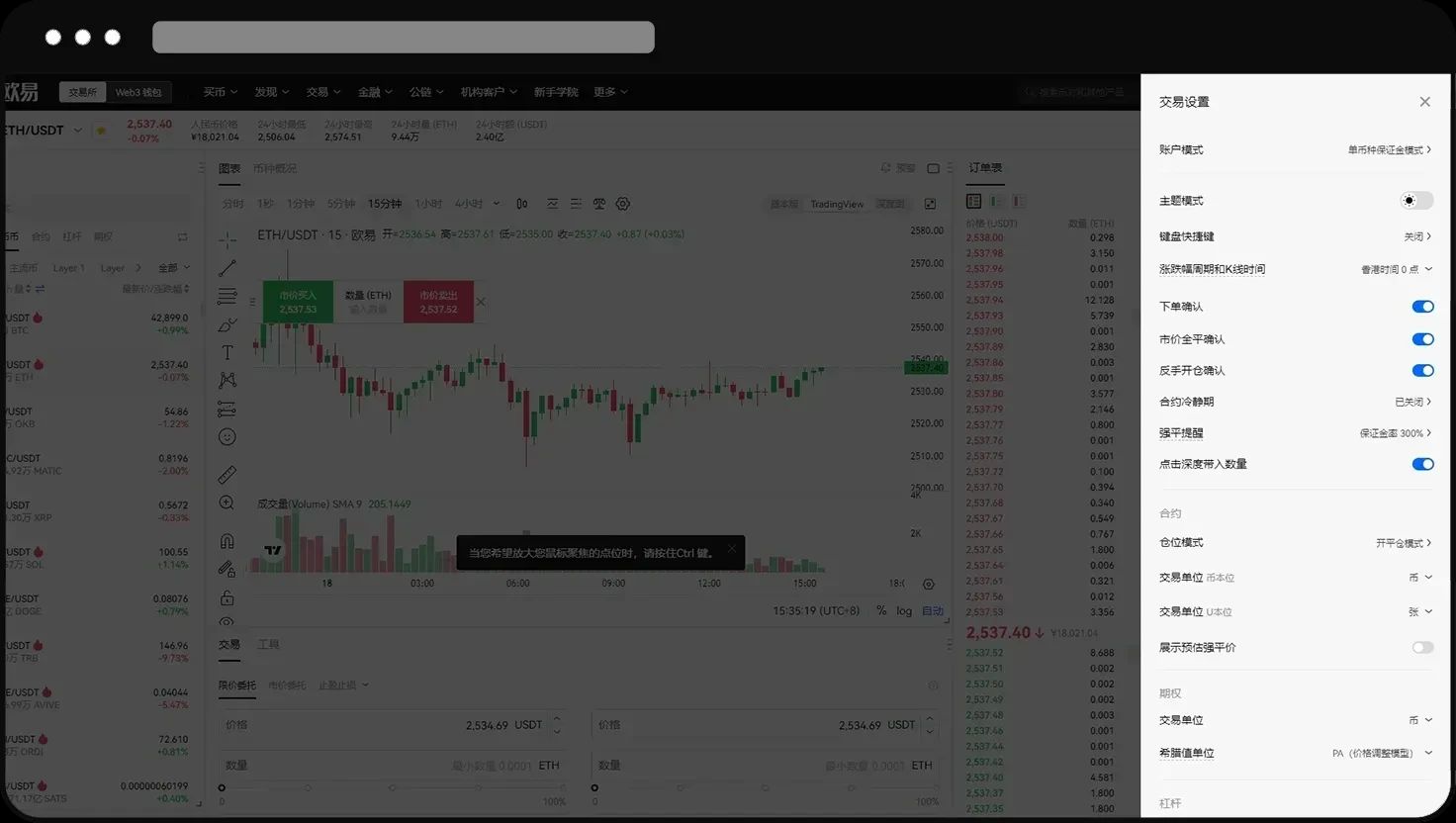 平台稳定性强,撮合速度快,系统流畅;中文界面完善,术语易懂,适配新手;支持模拟盘交易,零风险练习合约操作逻辑;流动性充沛,热门币种盘口深厚,降低滑点损失;移动端体验流畅,通过欧易 APP可随时随地掌控行情。新手做永续合约的内核建议
