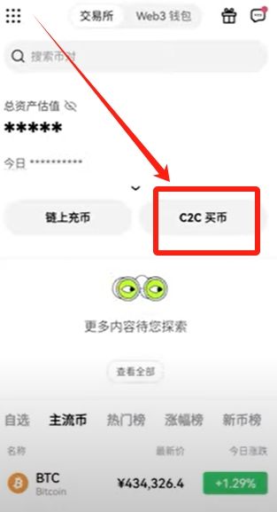 我现在所在的页面就是欧易交易所的页面。欧易交易所能够给我们带来的价值远不止普通的交易。欧易它是个数字货币交易所,能做的事情有很多,当你已经在欧易入过金了,接下来该干什么?如果你不知道怎么入金,简单来说就是选择首页这里的“C2C买币”。