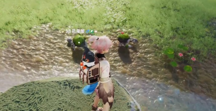 冰骨仔与花芽蟹构成寒水双系组合。前者在地宫烈火升腾传送点正北方向一块巨型风化岩体下方稳定出没;后者则集中分布于该岩体更北侧断层崖底溪流沿岸,群体刷新,单只等级为38级。推荐优先收服冰骨仔以获取冰系控场能力,再利用飞行宠快速下落至溪畔完成花芽蟹批量筛选。