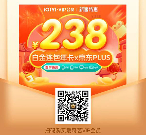 新用户138元一年,爱奇艺黄金会员+京东PLUS,原价218,节省80元。