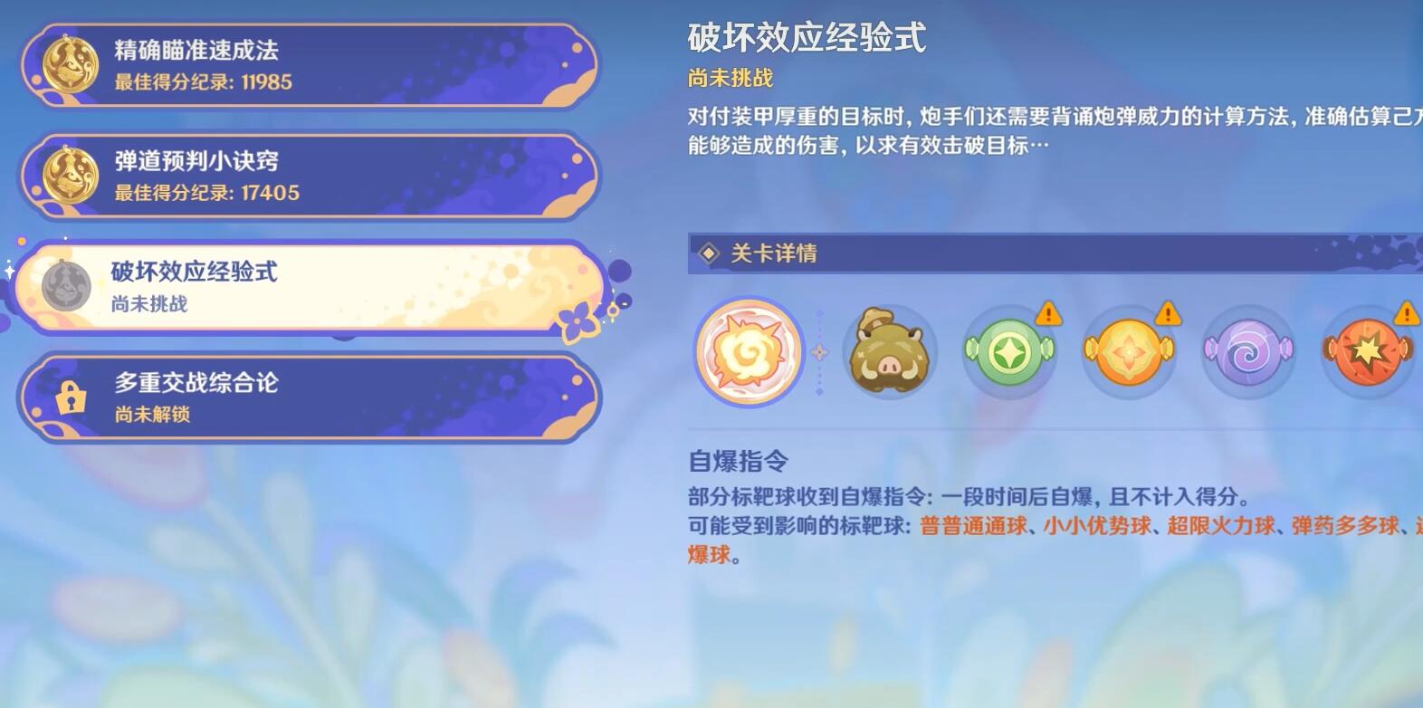 1、选择关卡【破坏效应经验式】。