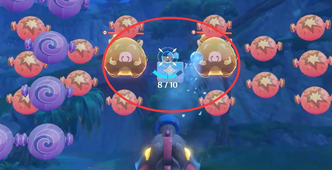 3、攻击连锁殉爆球将附近的气球全部引爆,避免打中捣乱球。