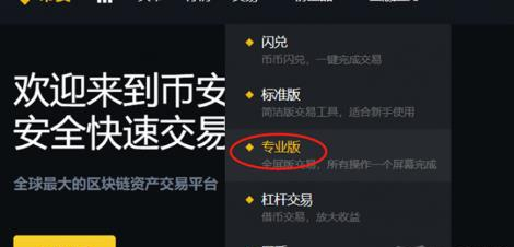 成功登录币安账户后,在导航菜单中切换至专业版交易界面。