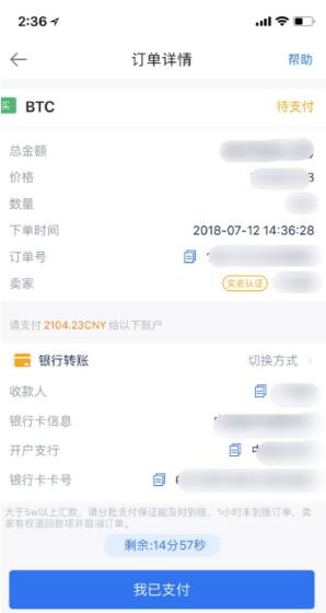 5.等待确认放币:转账完成后需点击"我已支付"按钮,系统将自动处理后续流程