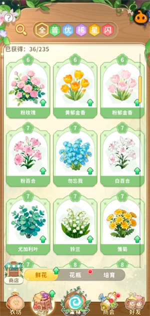 5、鲜花尽量换紫花,花瓶不是特别贵,可以看下自己都有什么花优先选择适配最高价花的花瓶,方便花艺赚金币