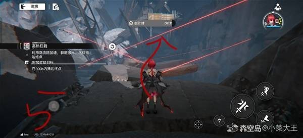 这关没有宝箱,跑快点就行,路线如下: