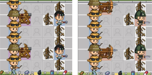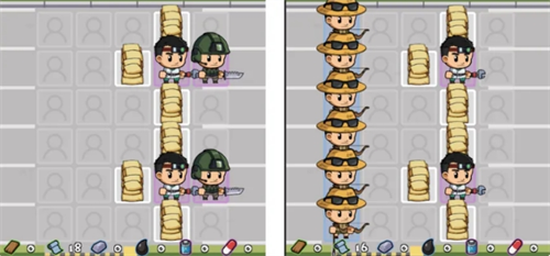 这样摆放两个“橙色士兵”一般能轻松打过100左右的关卡(最好是半感染者)