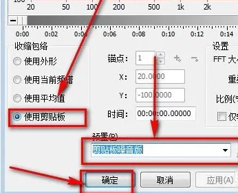 5、在降噪面板里面选择使用剪切板,预置那里也选择剪切板噪音版然后点确定。