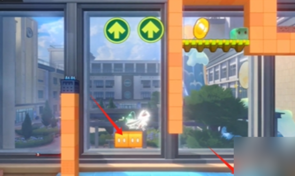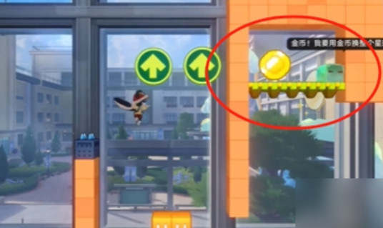 这里就看玩家的通过技巧了,一直往前来到这个大金币的位置