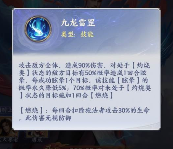 九龙雷罡其实就是唐震的最强功能的一个技能效果,想要发挥唐震的最大潜力就要用到,这个技能释放的时候,能对全体敌人施加灼烧状态,重点是哪怕敌方没有被灼烧,也能强制触发,相当于开局就能给敌方全员挂 debuff,同时还能附加眩晕效果,打断敌方的开局技能释放,这一点真的太关键了,尤其是面对那些开局就放爆发技能的敌方阵容,唐震开局一个九龙雷罡,就能直接打破前期对面的节奏,而且后续每次命中处于灼烧状态的单位时,唐震自身的斗气积攒效率还会提升,所以这个时期斗气攒得快,就能更频繁地释放技能,还有一点大家一定要注意,这个技能没有防御减免机制,伤害结算不是看敌方的防御,而是基于目标当前的攻击力,所以哪怕面对高防阵容,唐震也能打出稳定的压制力,不会出现打不动的情况,这也是他比其他火系角色更实用的地方。