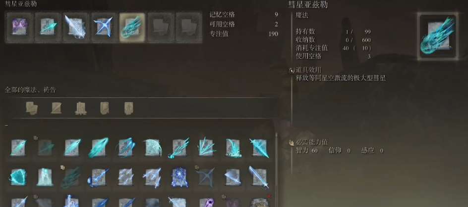 使用彗星亚兹勒技能有较高的属性与装备要求,智力属性需要达到60点,并且该技能会占用三个记忆空格,由于其法力消耗巨大,玩家在获取前应确保角色的智力属性足够,并需要考虑搭配提升法力恢复或减少消耗的装备与道具,例如卢瑟特的辉石杖与亚兹勒辉石头冠能够增强该技能的威力,蓝秘密滴露则可以提供短时间内不消耗法力值的增益,以优化使用效果。
