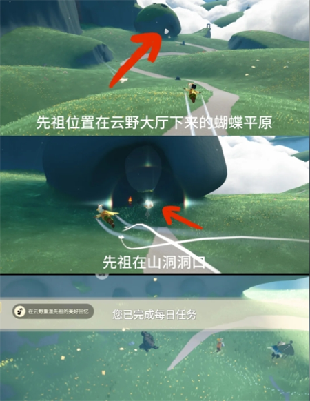 先祖位置在云野蝴蝶平原,从云野大厅下去就是蝴蝶平原,先祖在山包洞口位置