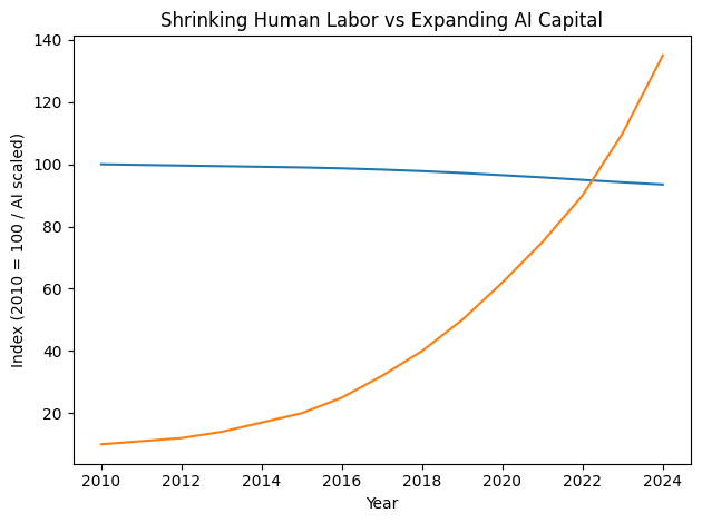人类劳动力收缩 vs AI 资本指数扩张