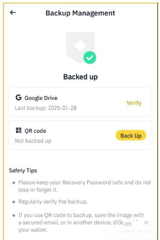通过设置菜单选择【钱袋管理】,选定目标钱袋后进入【备份管理】选择备份方式。建议使用恢复密码验证确保备份有效性。