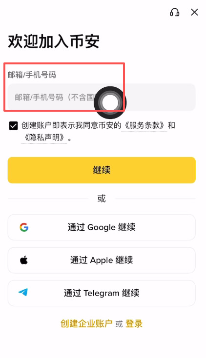 输入一下你的邮箱或者手机号码,手机号大家可以直接使用中国的+86的手机号。邮箱可以使用Gmail邮箱或者是Outlook邮箱来注册。