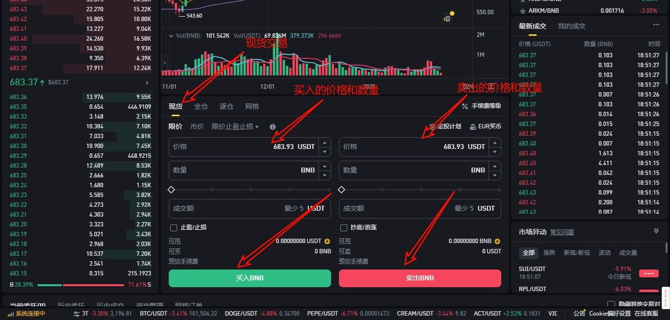 2.选择交易对:在交易页面,你可以看到各种交易对,如BNB/USDT、ETH/USDT等。选择你想要交易的币对。