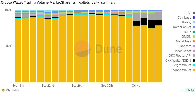 币安浅包于去年末推出,刚刚上线时饱受争议,而自币安 Alpha 上线后,如今币安浅包无论是交易量、用户活跃度都已经稳居加密浅包第一的位置,根据 Dune 数据,币安浅包已占据了加密浅包市场 90%的份额。