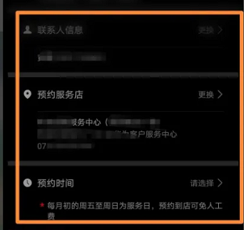 5、之后按照官方要求,填写相关联系人信息,预约服务的门店